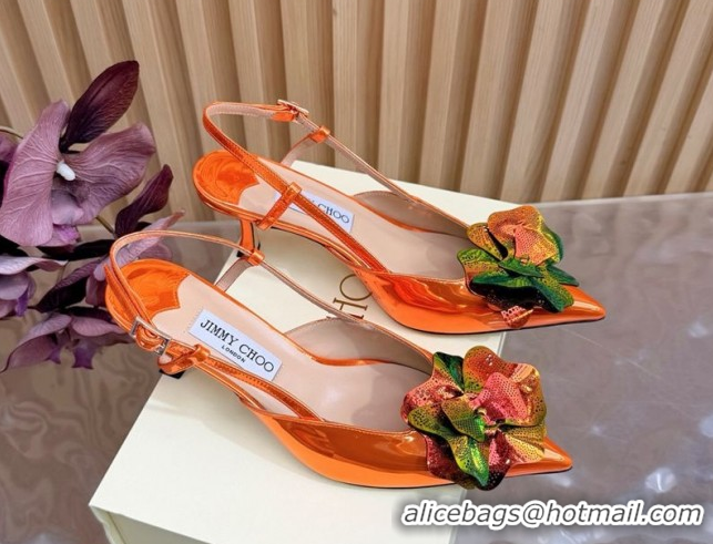Sumptuous Jimmy Choo Mimmi Sling Back Pumps 6.5cm in Patent Leather with Flower Orange 0207025 2026