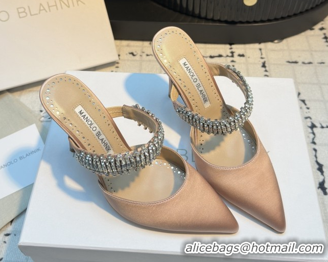 Sumptuous Manolo Blahnik Lutara 90 Satin Mules Strass Embellished 112502 Nude 2026
