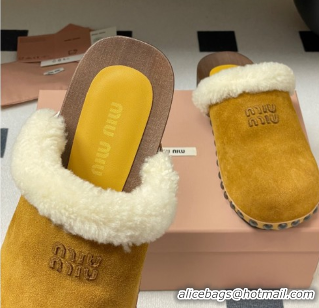 > Shoes Plaza > Miu Miu Shoes > 1:1 aaaaa Miu Miu Suede and Wool Clogs Mules Yellow MIU082609 0826058