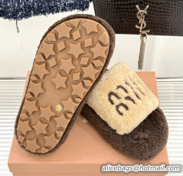 Sumptuous Miu Miu Shearling Platform Slides Sandal Beige/Brown MIU082609 0826059