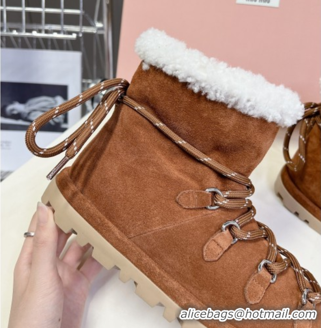 Sumptuous Miu Miu Suede and Wool Laced-up Flat Ankle Boots Brown MM102407 1024148 2025