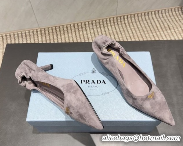 Sumptuous Prada Suede Elastic Heel Pumps 5.5cm Grey 1I188O 1205040 2026