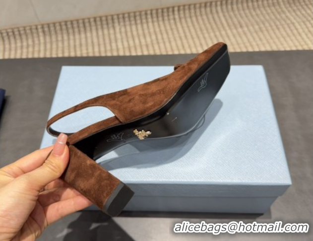 Sumptuous Prada Suede heel slingbacks pump 8.5cm Brown PR120504 1205069 2026