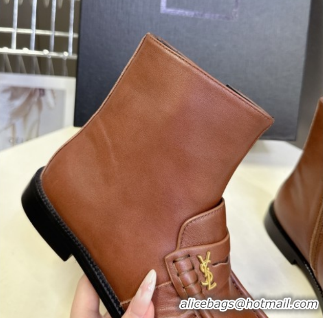 Sumptuous Saint Laurent Le Flat Booties in Calfskin Leather Brown YSL121301 1213041
