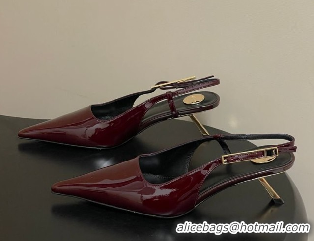 Luxury Saint Laurent Lee Slingback Pumps 5.5cm with Buckle in Patent Leather Burgundy 2026 799704