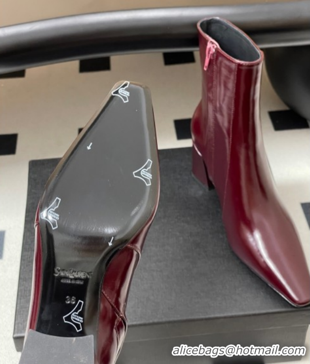Good Looking Saint Laurent Rainer Heel Ankle Boots 7.5cm in Shiny Leather Burgundy 1028107