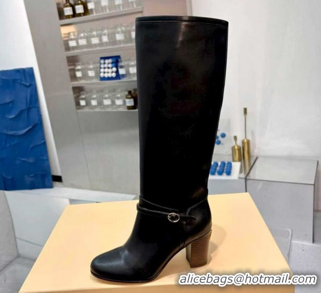 Perfect Valentino Calfskin Leather Heel High Boots 8cm with Buckle Black 1104084