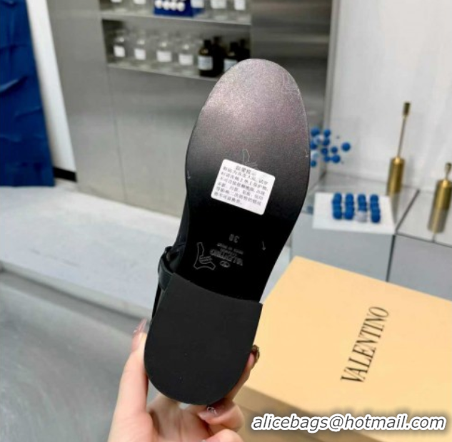 Sumptuous Valentino VLogo Signature Strap Flat Ankle Boots in Calfskin Leather Black 1104085