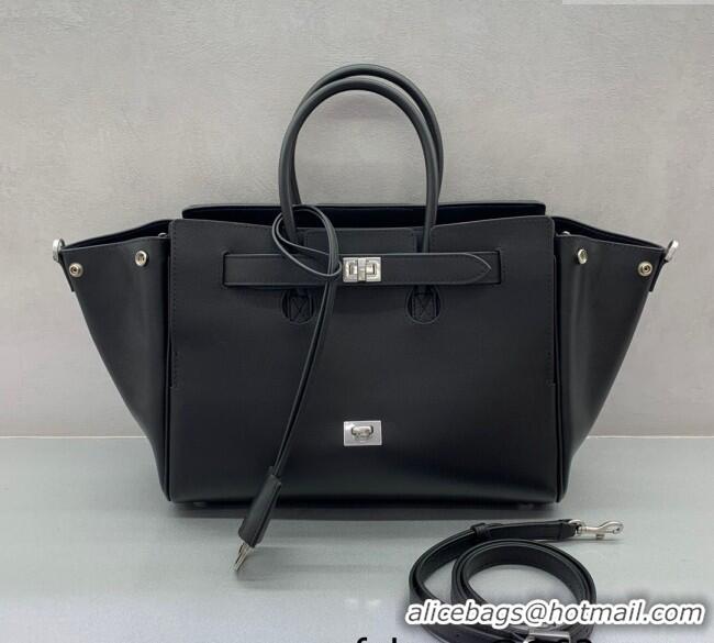 Super Quality Balenciaga Bel Air Small Carry All Bag in smooth calfskin 48089 black aged-silver hardware 2025