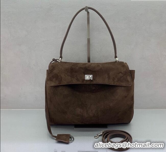 Super Quality Balenciaga Rodeo Medium Handbag in suede With aged-silver hardware 78972 Dark Coffee Brown 2025