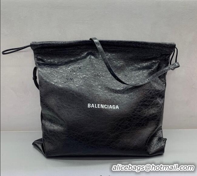 Super Quality Balenciaga Shopper Large Dust Bag Crossbody Pouch in Arena lambskin 48088 Black With aged-silver hardware 2025