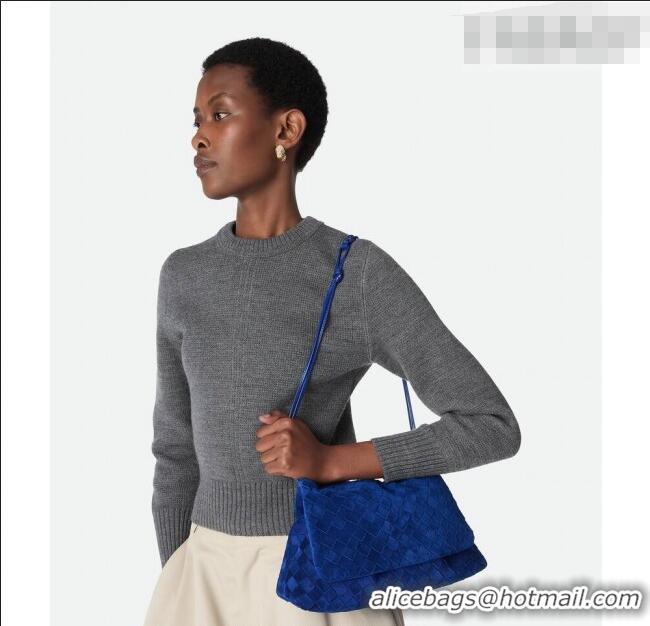 New Design Bottega Veneta Giorno Shoulder Bag in Intrecciato Suede 857657 Royal Blue 2026