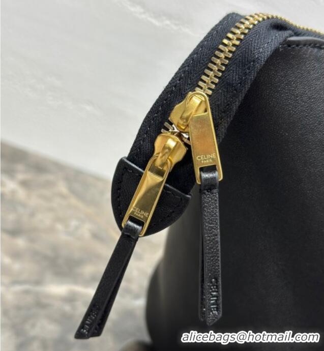 Top Quality Celine Medium Besace Triomphe Shoulder Bag in Supple Calfskin Leather 114453 Black/Silver 2025