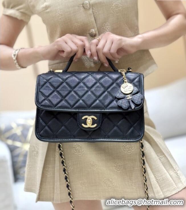 Promotional Chanel Flap Bag with Top Handle in Grained Shiny Calfskin AS3653 Black 2025 Top Quality