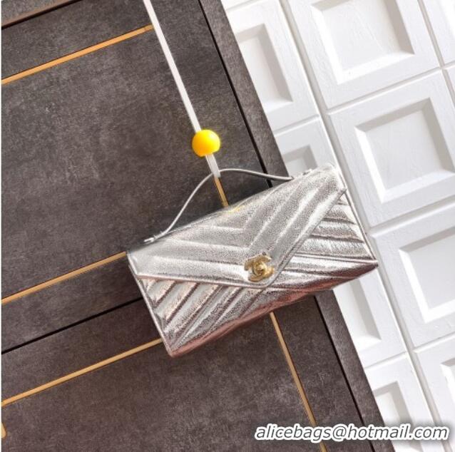 Buy Cheap Chanel Chevron Lambskin Leather Flap Top Handle Bag AS6044 Silver 2026