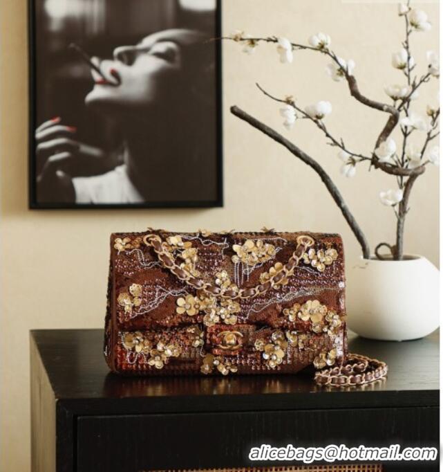 Super Quality Chanel Sequins Medium Classic Flap Bag CH11611 Brown 2025