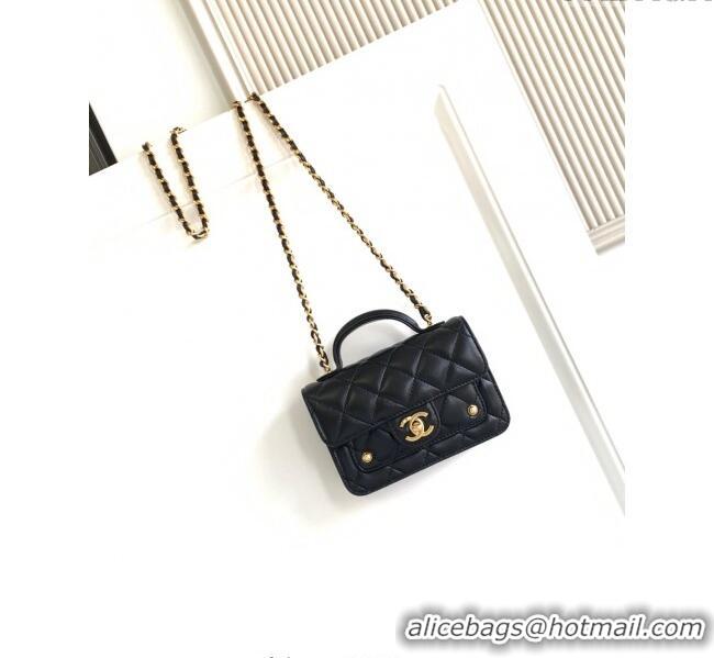 Super Quality Chanel Shiny Lambskin Clutch with chain and Top Handle Bag AP4675 Black 2025