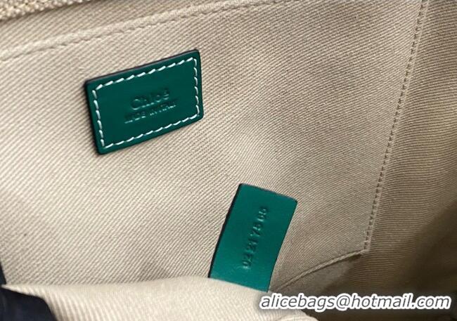 > Chloe Handbag > Super Quality Chloe Large Woody Tote Bag in Linen Canvas and Calfskin Leather 1120 Dark Green 2025