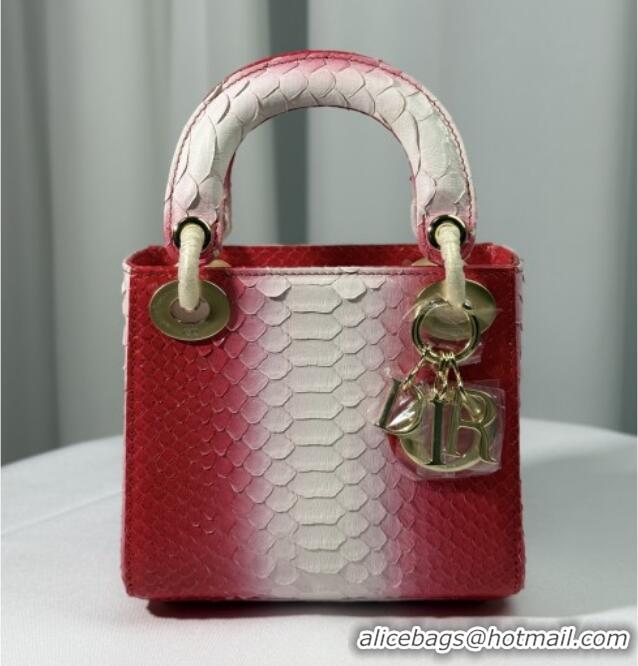 Super Quality Dior Mini Lady Dior Bag in Python Leather D123010 Red/White 2025