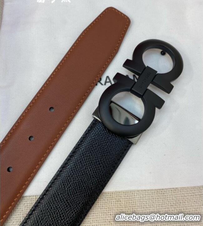 Super Quality Ferragamo Men's Belt 3.5cm in Reversible Palm-Grained and Brown Smooth Leather Matte 15018 All Black