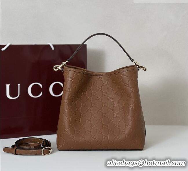 Super Quality Gucci GG Leather Emblem Medium Bucket Bag 815103 Brown 2026