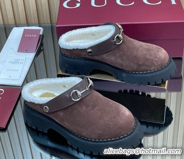 Durable Gucci Suede and Wool Mule with Horsebit 835829 Dark Brown 1020050
