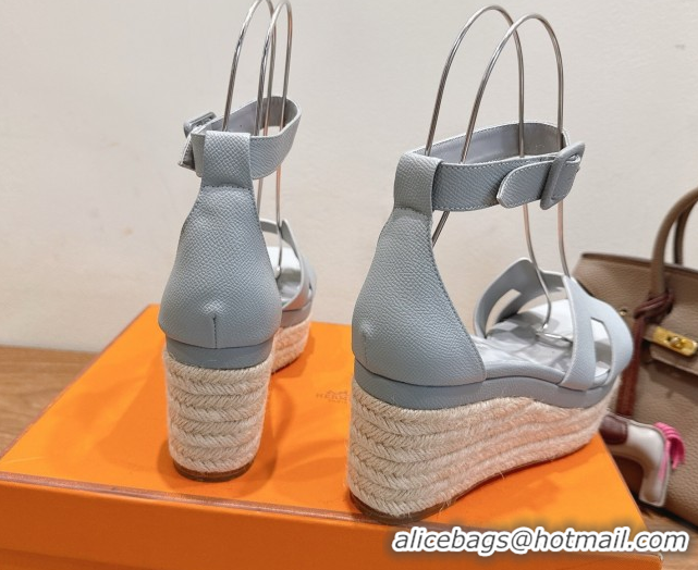 Super Quality Hermes Elda Platform Wedge Sandals 8cm Grainy Calfskin Light Blue 2025 H082010 0820109