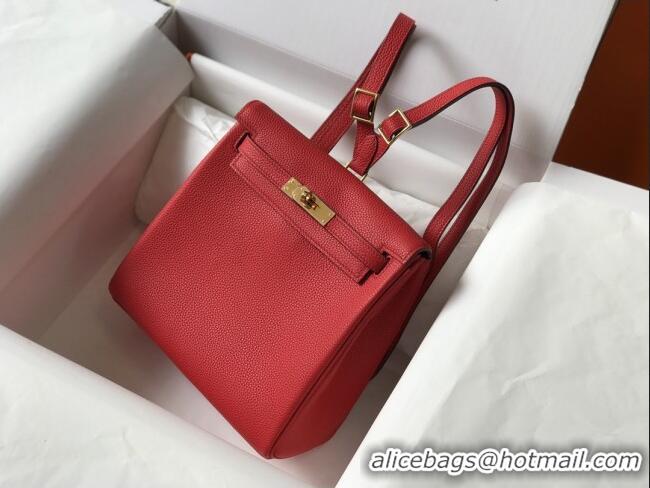 Super Quality Hermes Kelly Ado Backpack 22cm in Togo Leather H2101 Red/Gold 2026(Half Handmade)