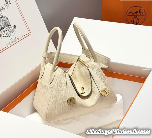 > Hermes Handbag > Hermes Lindy Bag > Super Quality Hermes Lindy Bag 26cm in Clemence Leather 2637 Cream White/Gold 2025 (Half Handmade)
