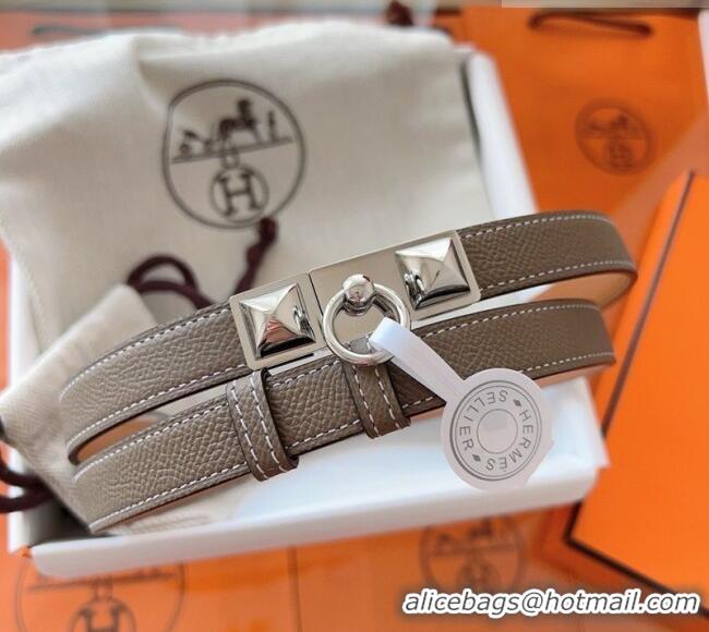 > Belts Mall > Hermes Belts > Shop Cheap Hermes Rivale Belt 1.8cm with Two Medor Studs and Ring Buckle in Epsom Leather 8196 Grey/Silver 2025