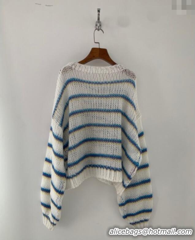Super Quality Loewe Mohair Crochet Sweater 0904 White/Blue/Purple 2025