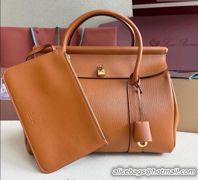 Super Quality Loro Piana Loom Top Handle bag L32 in Textured Calfskin Leather 0925 Brown 2025
