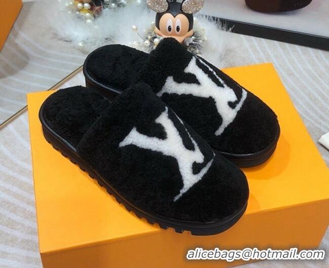 Top Quality Louis Vuitton Shearling Flat Mules Black 111756