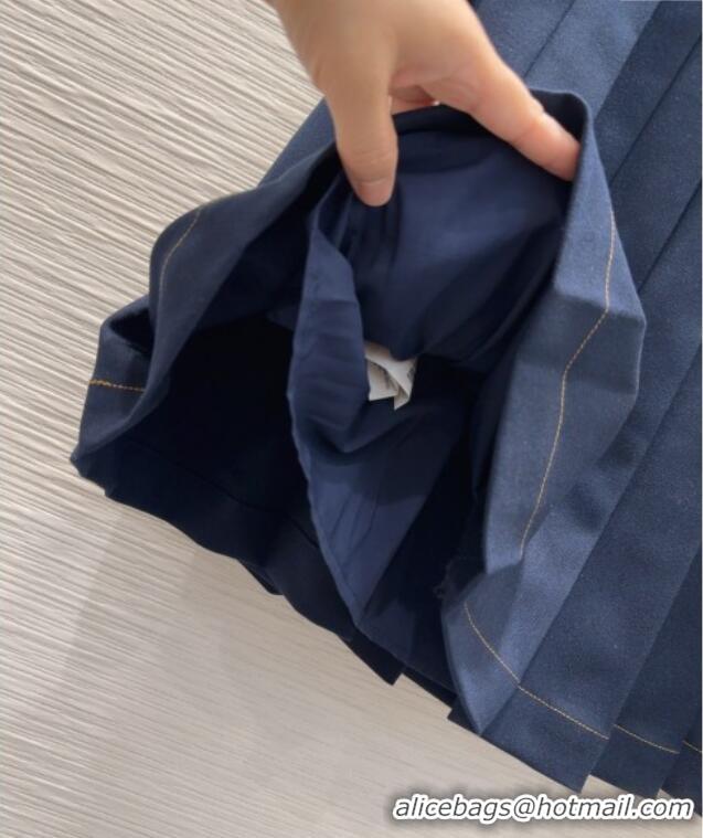 Good Quality Miu Miu Cotton Blend Pleated Skirt M091805 Blue 2025