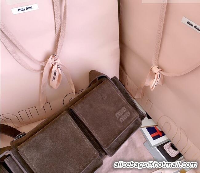 Good Product Miu Miu Pocket Suede Shoulder Bag 5BA175 Briarwood Brown 2026