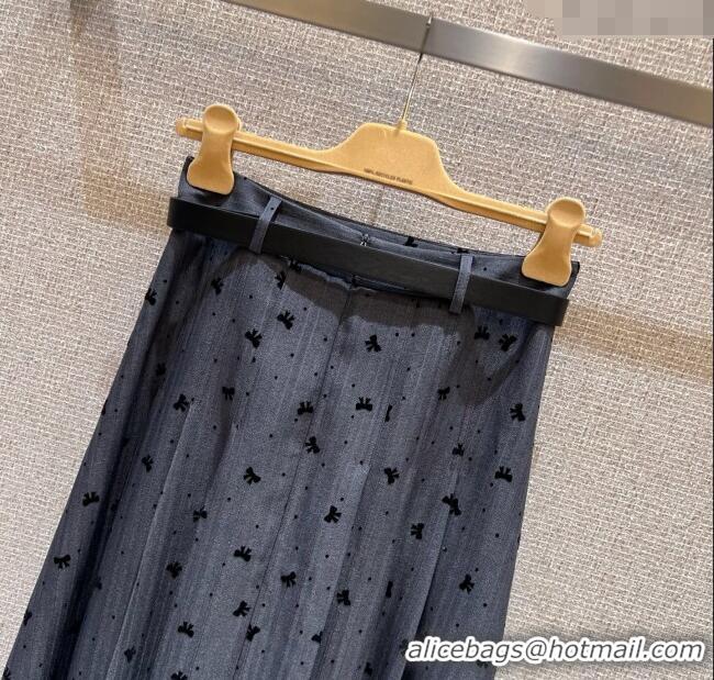 Top Design Miu Miu Pleated Skirt with Print 0814 Grey 2025