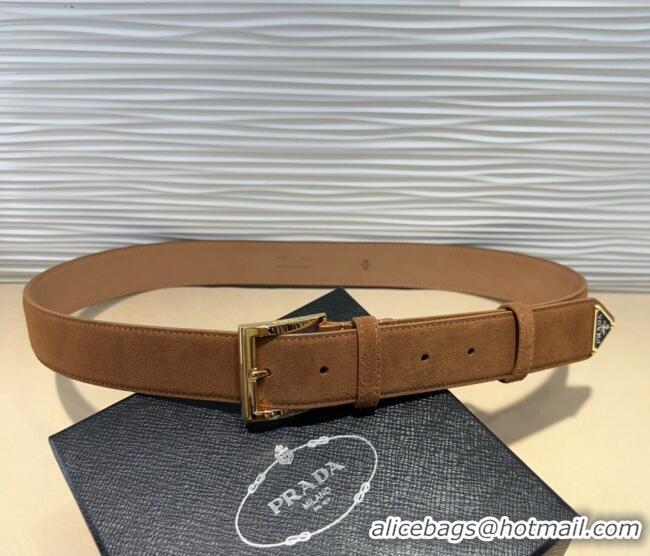 Super Quality Prada Suede Belt 3.5cm with Gold Pin Buckle 1127 Brown 2024