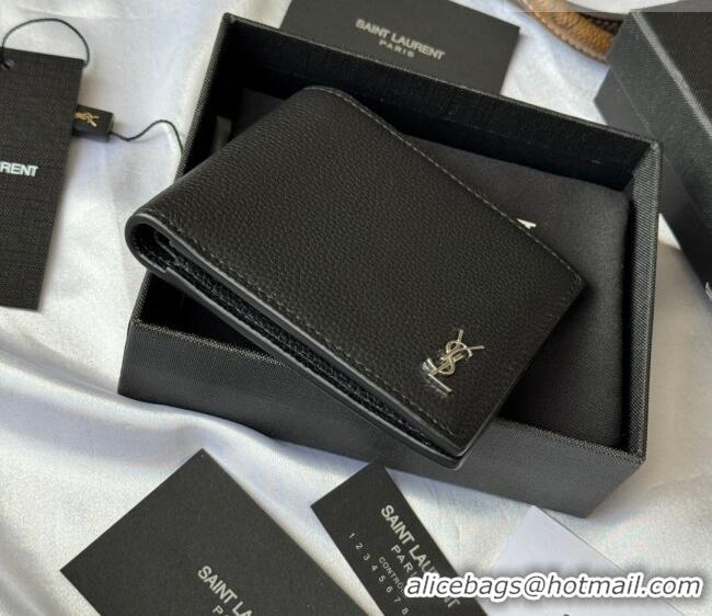 Top Grade Saint Laurent Men's Tiny Cassandre Eastwest Wallet in Grained Leather 607727 Black/Silver 2026