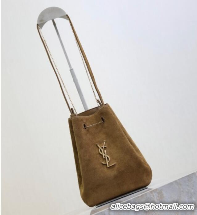 Trendy Design Saint Laurent Pochon Bucket Bag in Suede 801070 Brown 2025