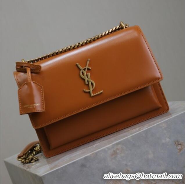 Good Product Saint Laurent Sunset Medium Bag in Box Leather 442906 Caramel Brown 2025