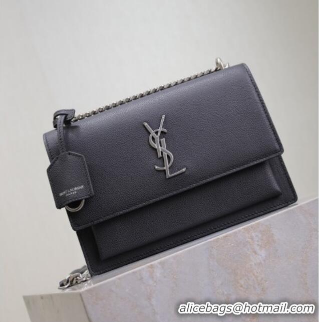 Super Quality Saint Laurent Sunset Medium Bag in Grained Leather 442906 Black/Silver 2025