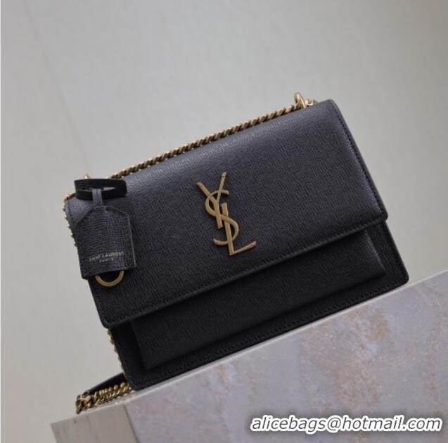 > Yves Saint Laurent Bag > Grade Design Saint Laurent Sunset Medium Bag in Saffiano Leather 442906 Black/Gold 2025