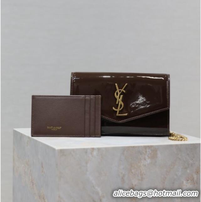 Top Quality Saint Laurent Uptown Chain Wallet in Patent Leather 607788 Brown 2025