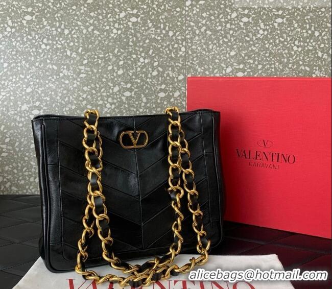 Your Position: Home > Valentino Handbag > Super Quality Valentino Laseine Small Shopping Bag in V Shiny and Matte Nappa Leather 0082 Black 2026