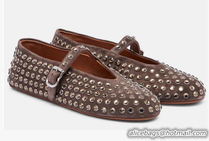 Your Position: Home > Shoes Plaza > Alaia Shoes > Top Design Alaia Embellished Suede Mary Jane Flats 3209 Brown