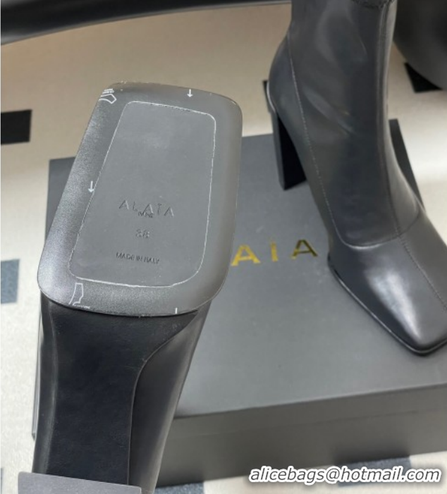 Top Design Alaia Square Heel Ankle Boots 10cm in Calf Leather 2026 AL102904 Black
