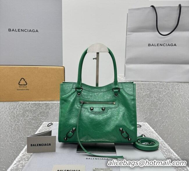 Top Design Balenciaga Le City Tote Bag Small in Arena Storico Lambskin 1029 Green 2025