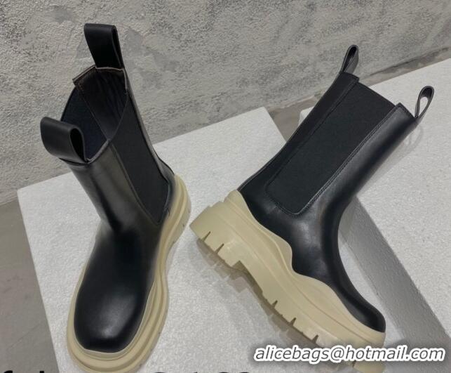 Durable Bottega Veneta Tire Calfskin Short Chelsea Boot Balck/Beige 072115