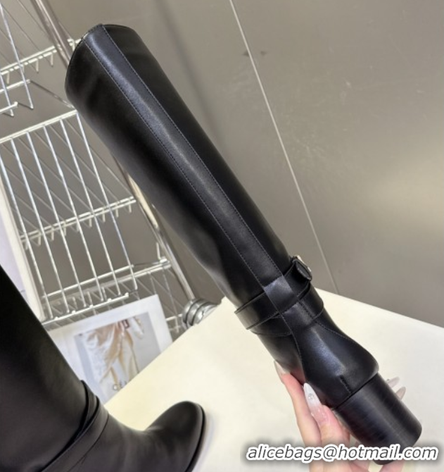 Top Design Celine Garance Heel High Boots 6cm in Calfskin Leather with Triomphe Logo Strap Black 1024049