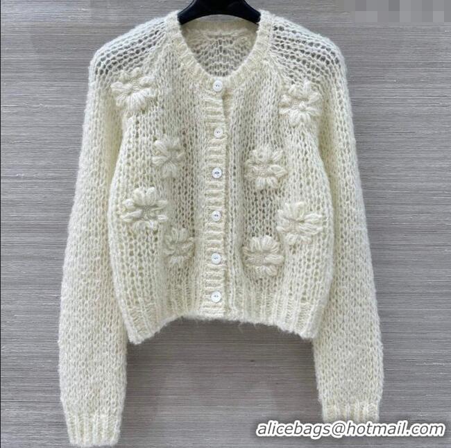 Top Design Celine Mohair and Wool Cardigan with Flower 1014 White 2025